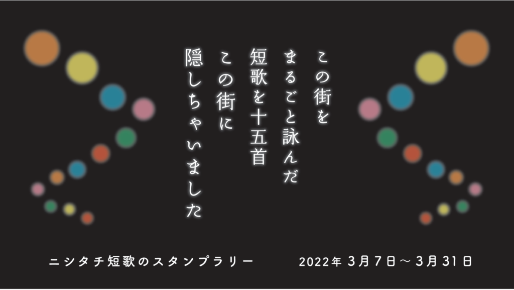 まん延防止特別措置に伴う開催時期の変更につぐ変更で遅くなってしまいましたが、ついに「ニシタチ短歌のスタンプラリー」のチラシが完成しました!